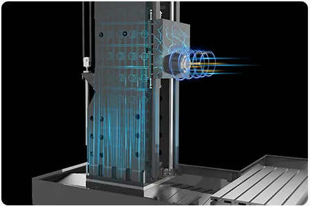 The Y-axis features a dual-layer wall moving column structure, crafted from premium HT-300 cast iron with secondary annealing, guaranteeing resistance to deformation and superior accuracy.