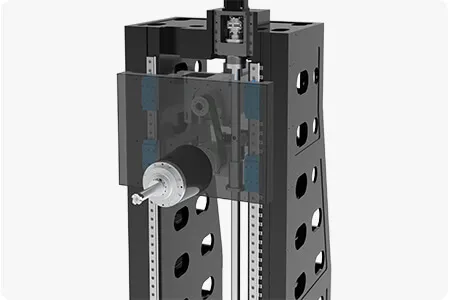 Dual extended heavy-duty 55# roller linear guides provide exceptional vibration resistance. The spindle box, enhanced with a nitrogen balance system, boosts dynamic response speed.